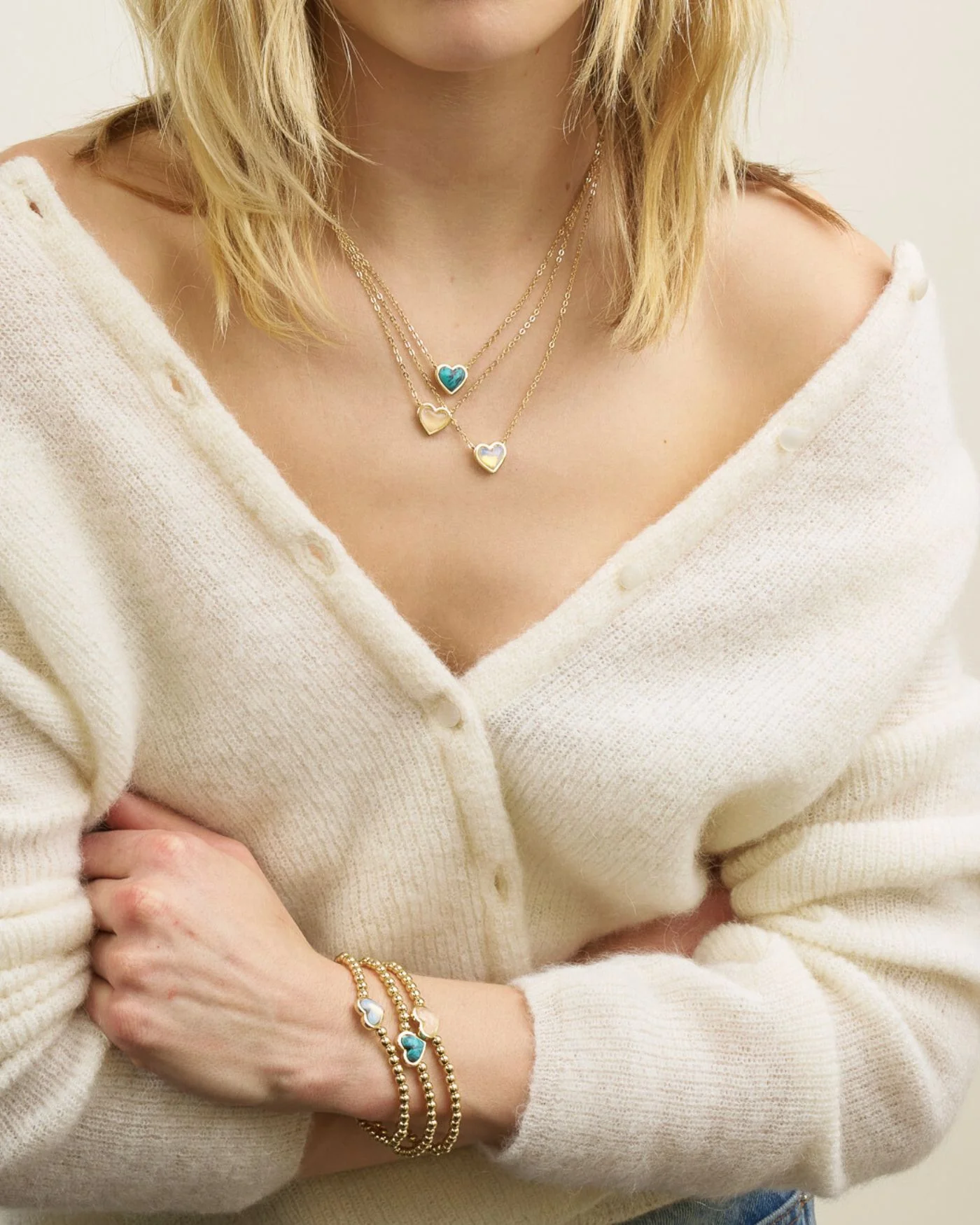 - Genuine 12-karat gold-dipped brass beads with semi-precious stone hearts
